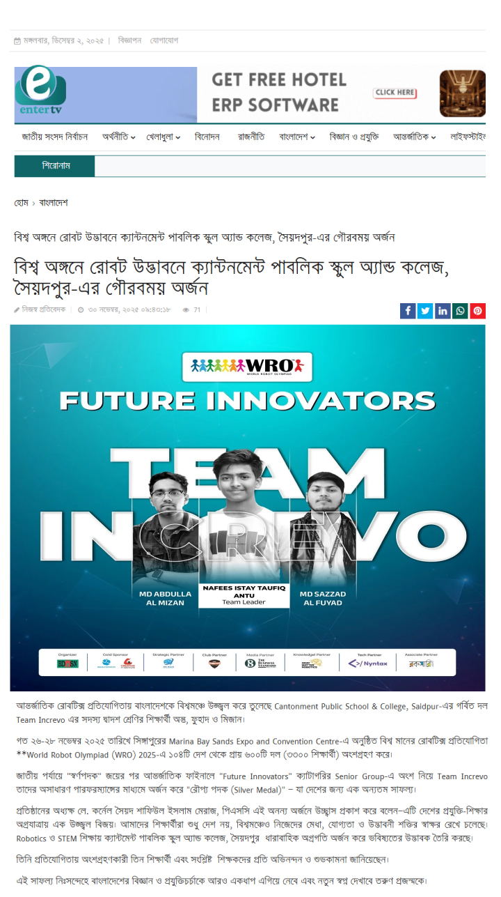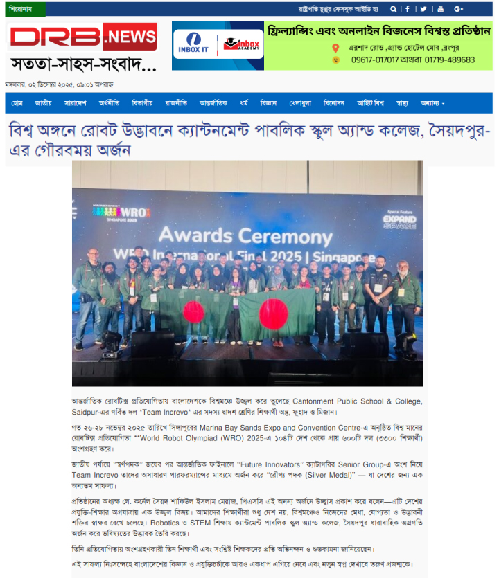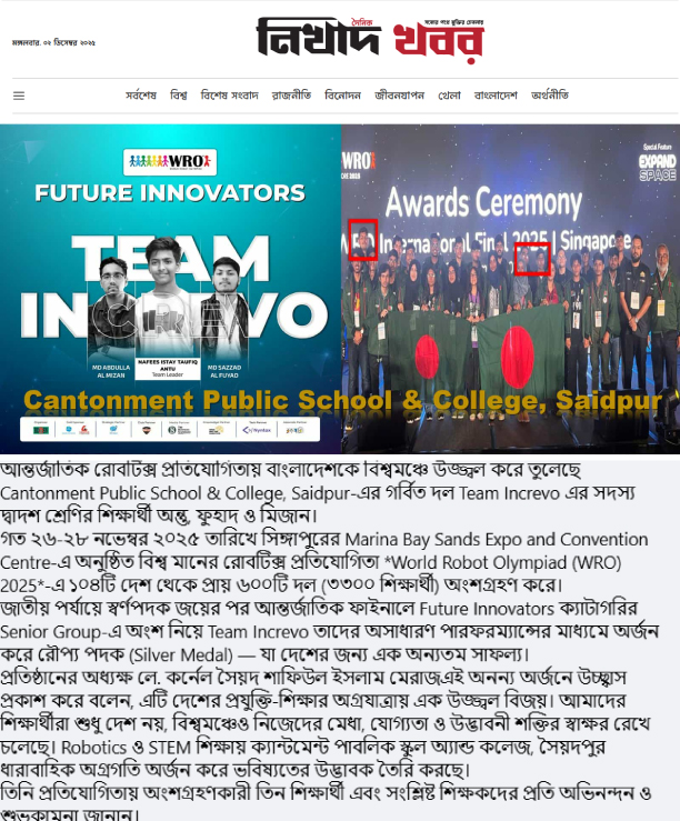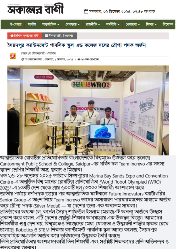 CPSCS excels beyond academics. Its students won gold in the National Sports Competition (1994 & 1995) and the UNICEF Grand Prix Award in 2006. Recognition followed in Islamic competitions by the Islamic Foundation, national art contests, and the National Childrenâs Award in 2017. A student claimed the Best Costume Award at the 2020 international ‘Colors of Voice’ contest. In 2024, three students excelled in the International Leadership Program on Education 4.0 and IOELLS in Malaysia, while others achieved honors at IYSC Malaysia and WCCA Nepal. Domestically, 35 students were top performers at the NCCA-2024. Our students excelled in National Level of various Olympiads in 2025, earning 1st & 3rd in Bangla, 1st & 3rd in ILPE, 3rd in Math, 4th & 23rd in Physics, 9th & 13th in Chemistry, 4th in Robotics, and 28th in Astronomy & Astrophysics Olympiad.